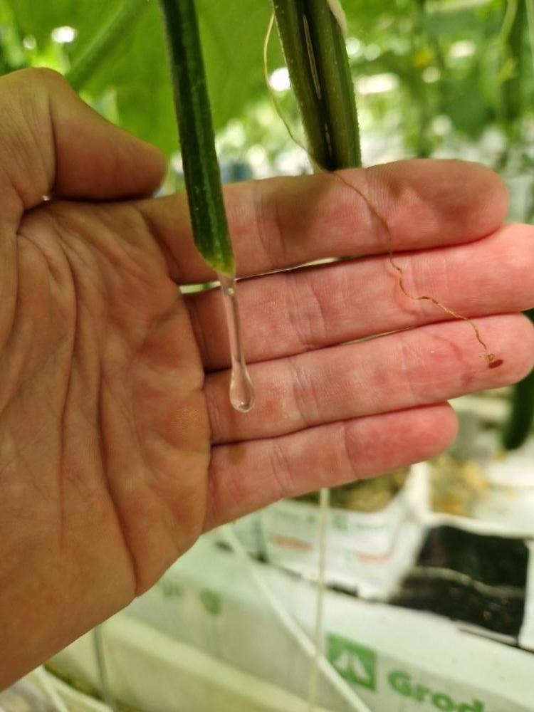 Midden in de zomer groeien de planten en komkommers het snelst. Dit komt doordat de dagen het langst zijn en de plant het meeste licht krijgt. Uiteraard heeft de plant ook meer water en voeding nodig. Het water wordt snel naar de komkommers getransporteerd. Wanneer de komkommer geoogst wordt kan je goed zien hoeveel druk er op het steeltje heeft gestaan: