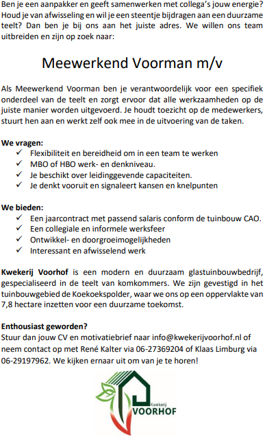 Zie hieronder de vacature: